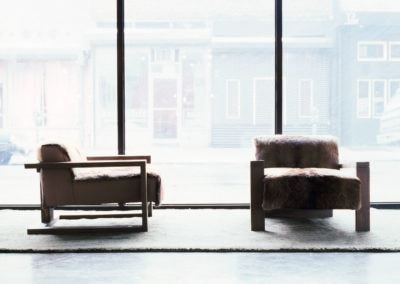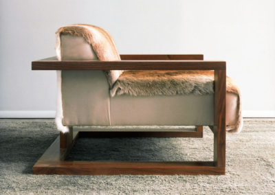 At home in Aspen, LA or NYC, our Caribou Lounge is actually upholstered with Coyote Fur. Secured in an exposed hardwood frame, this is a chair that is equally beautiful from any angle. The structure floats in a solid American black walnut frame which contrasts assuredly with the variations of the fur. Imposing and comfortable at the same time, the Caribou model is one of our most beloved luxury lounge chairs.