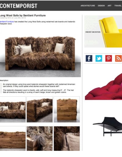 Dominating living rooms, waiting rooms, and hospitality venues, the long wool sofa bed is a unique display of natural beauty and human ingenuity. Recognized by astute enthusiasts and industry leaders alike, the Icelandic sheepskin sofa is a proud representative of the Scandinavian style, the New York design scene, our SENTIENT ethos, and the exceptional Brooklyn talent behind its development. Visit our studio on 276 Greenpoint Avenue, Brooklyn, NY 1122 or call us at 1 (347) 309-6217, to talk about custom options for this lovely model.